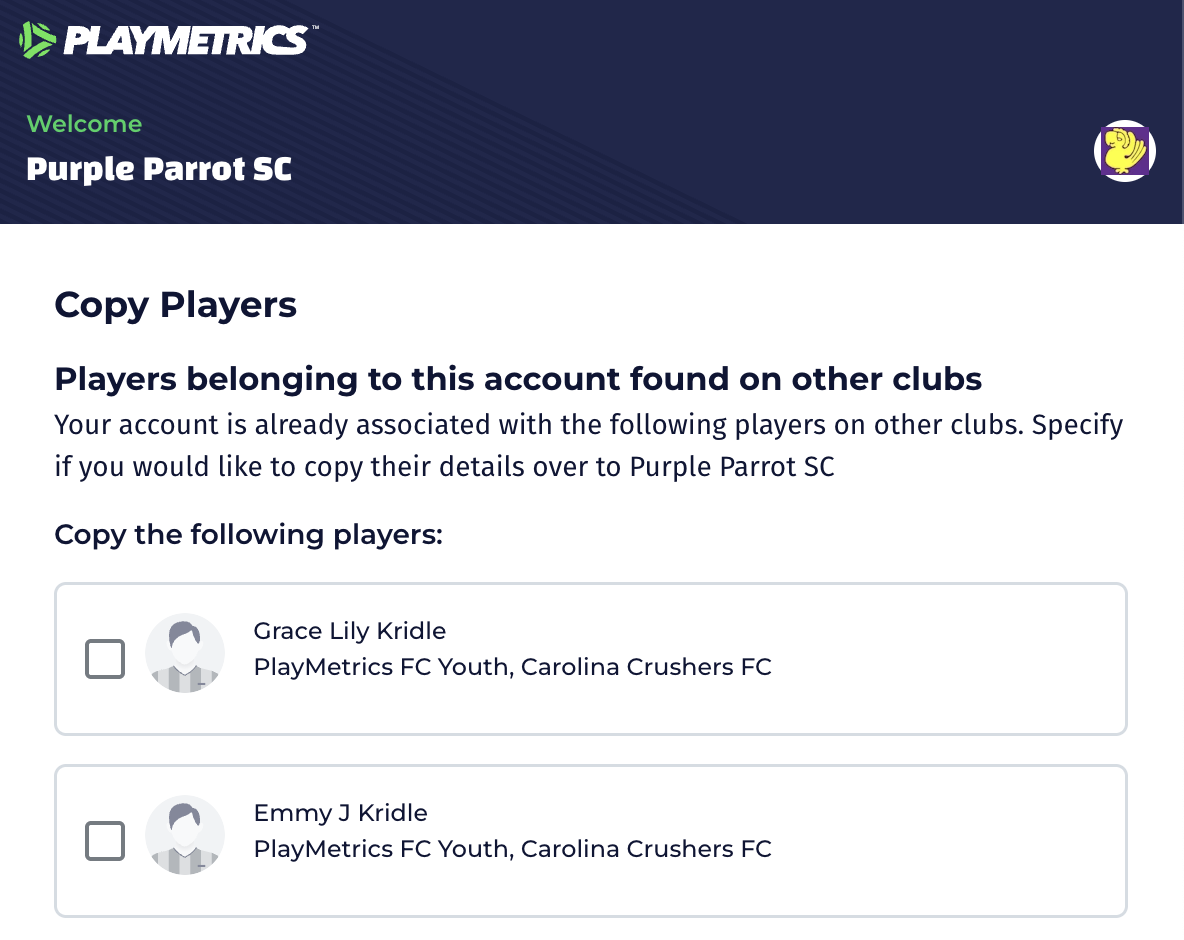 After you successfully copy your players, you receive an email from PlayMetrics confirming the players' names that were copied over.